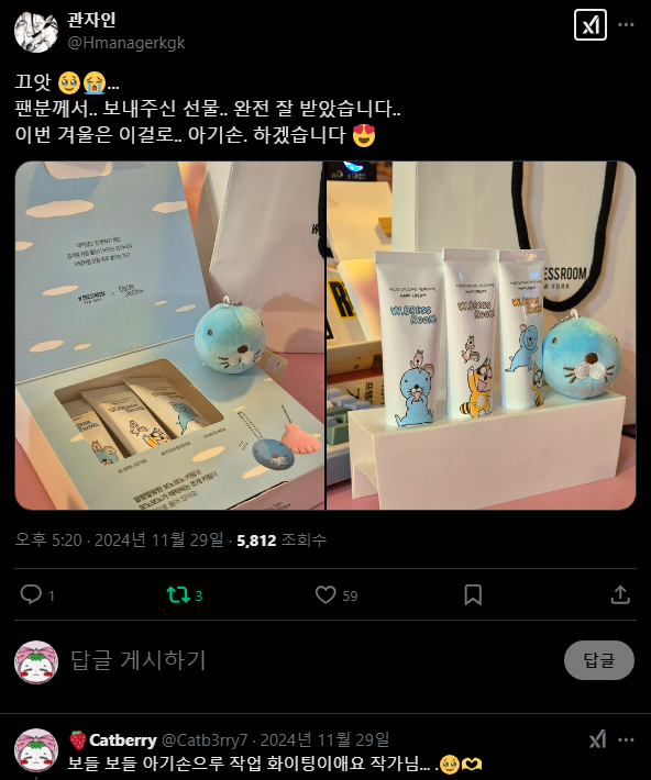 진짜 받고 입 싹 닦아도 괜찮은데 푸하학.. 그저 너무 선물 준 입장에서 감사하기도 하고 뿌듯하기도하고...ㅎ////ㅎ