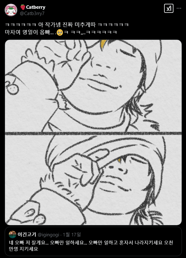 근데 작가님 다음 트윗이 더 웃겼어... 그래서 저 낙서 후다닥 함...