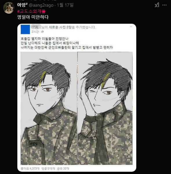 이때 어떤 교도개 팬분이 이런거 올렸었음.. .