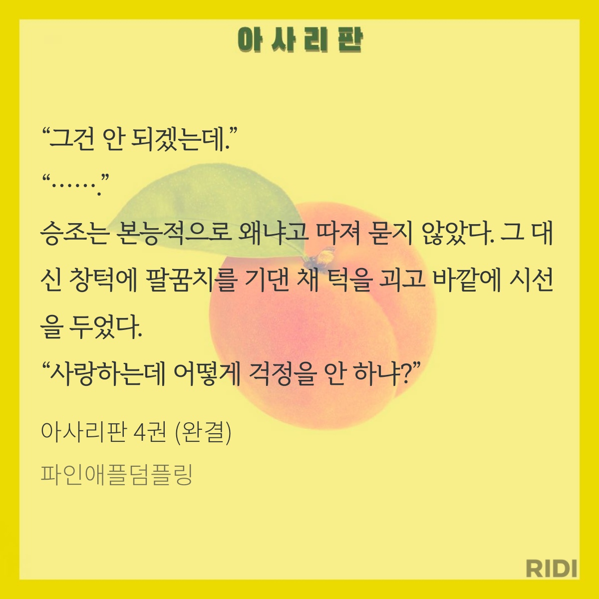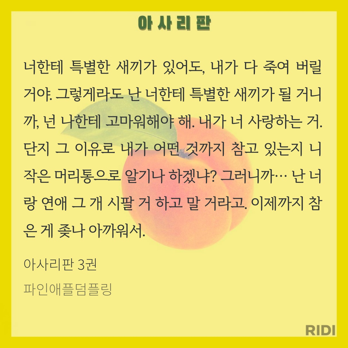 아사리판 작품소개: #노란장판 #나이차이 #떡대미남공 #미남수 #조폭출신공 #입이상스럽공 #능글까칠수 #후회공 #도망수 #혐관 #재회물※2000년대 초반 배경으로 폭력, 욕설, 호불호가 갈리는 저속